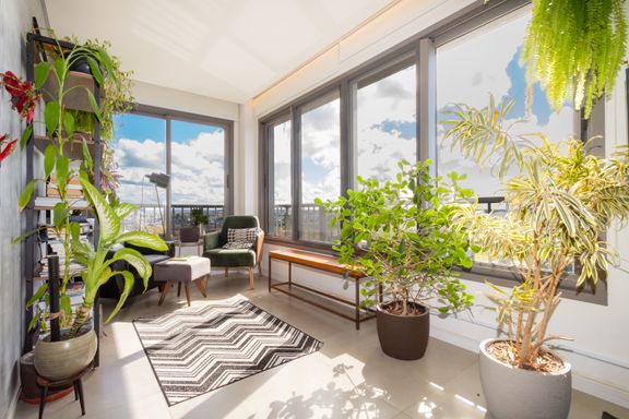 Sala com lindo por do sol. Edifício Vanguarda foi reconhecido com o Prêmio Master Imobiliário 2023 na categoria Melhor Case de Marketing. Evidenciando a excelência arquitetônica, a inovação, o impacto na comunidade e a sustentabilidade.